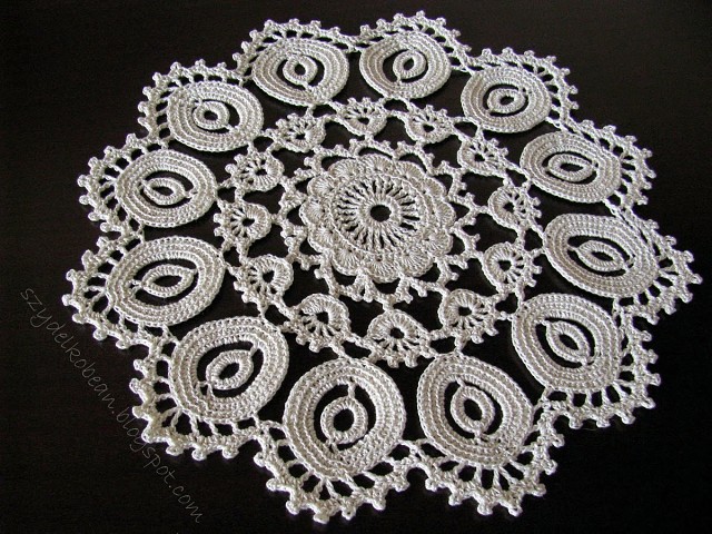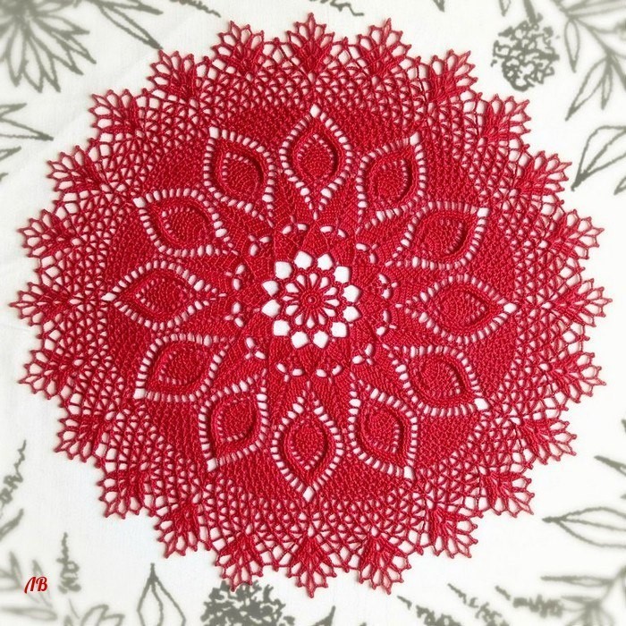 Салфетка крючком "Особая"🌸 👉🏻У нас еще много интересного😎 Уровень сложности. Требует опыта. Размер в готовом виде 30 см в диаметре. Материалы Хлопок для вязания крючком №10: 350 yds = 320 м - 1 клубок Крючок 1,65 мм Плотность 6 круговой ряд = 7 см Специальные петли Столбик с тремя накидами ( СС3Н) вяжется в указанный ССН Рельефный столбик без накида, расположенный за работой (РЗСБН) вяжется в указанный ССН Рельефный столбик без накида, расположенный перед работой (РПСБН) вяжется в указанную петлю) Рельефный столбик с 2-мя накидами, расположенный перед работой (РПСС2Н)- вяжется в указанную петлю Split DC вяжется в две арки из 3-х ВП: 1 шаг. ССН связать в ту же арку из 3-х ВП, куда был связан последний ССН (последняя петля остается не провязанной) 2 шаг. ССН связать в указанную арку из 3-х ВП, куда был связан последний ССН (провязать вместе получившиеся 3 петли). Split Cluster вяжется на следующих 7-ти петлях: [РПСС2Н в следующий РПСС2Н(последняя петля остается не провязанной )]дважды , накид, пропустить следующие 2 ССН, вставить крючок в следующий Split DC, накид и вытянуть петлю, накид, провязать 2 петли с крючка вместе, двойной накид, пропустить следующие 2 ССН, повторить от[до ]один раз, накид и провязать вместе все 4 петли с крючка. Убавка СБН: вытащить петли из следующих 2-х арок из 3-х ВП, накид и провязать вместе, получившееся 3 петли. Салфетка. 6 ВП соединить в кольцо с помощью соединительной петли. 1 РЯД. (правая сторона): 3 ВП (считать как первый ССН), 11 ССН в круг; соединить соединительной петлей с первым ССН: 12 CCН. 2 РЯД. 3 ВП, ССН в ту же петлю, (2 ВП, 2 ССН в следующий ССН) по кругу, 1 ВП, СБН в первый ССН для последней арки из 2-х ВП : 24 CCН и 12 арок из 2-х ВП . 3 РЯД. 3 ВП, 2 ССН в арку из 2-х ВП, сделанную последней, 5 ССН в каждую арку из 2-х ВП по кругу, 2 ССН в ту же арку, откуда первый ССН; соединить соединительной петлей c первым ССН: 60 CCН. 4 РЯД. 1 ВП, СБН в ту же петлю,*5 ВП, пропустить следующие 4 ССН, СБН в следующий ССН; повторять от * по кругу до последних 4 ССН, 2 ВП, пропустить последние 4 ССН, ССН в первый СБН для последней арки из 5-ти ВП: 12 СБН и 12 арок из 5-ти ВП. 5 РЯД. 3 ВП, 3 ССН в арку из 5-ти ВП, связанную последней, РПСС2Н в следующий СБН, (7 ССН в следующую арку из 5-ти ВП, РПСС2Н в следующий СБН) по кругу, 3 ССН в ту же арку, откуда первый ССН; соединить соединительной петлей c первым ССН: 96 петель. 6 РЯД. 1 ВП, СБН в ту же петлю и следующие 3 ССН, РПСБН в следующий РПСС2Н, ( СБН в следующие 7 ССН, РПСБН в следующий РПСС2Н) по кругу до последних 3 ССН, СБН в последние 3 ССН; соединить соединительной петлей c первым СБН. 7 РЯД. 1 ВП, продолжаем работу позади петель 6-го ряда, Р3СБН в первый ССН 5-го РЯДА, 7 ВП, (Р3СБН в центральный ССН следующей группы из 7-ми ССН 5-го ряда, 7 ВП) по кругу; соединить соединительной петлей с первым Р3СБН: 12 Р3СБН и 12 арок из 7-ми ВП. 8 РЯД. (Соединительная петля, 3 ВП, 8 ССН) в первую арку из 7-ми ВП, РПСС2Н в следующий РЗСБН, (9 ССН в следующую арку из 7-ми ВП, РПСС2Н в следующий РЗСБН) по кругу; соединить соединительной петлей c первым ССН: 120 петель. 9 РЯД. 1ВП, СБН в эту же петлю и следующие 8 ССН, РПСБН в следующий РПСС2Н, (СБН в следующие 9 ССН, РПСБН в следующий РПСС2Н) по кругу; соединить соединительной петлей c первым СБН за заднюю дольку петли. 10 РЯД. Продолжаем работу за задние дольки петель, (Соединительная петля , 1 ВП, СБН) в следующий СБН, (3 ВП, пропустить следующий СБН, СБН в следующий СБН)3 раза,*(пропустить следующий СБН, С