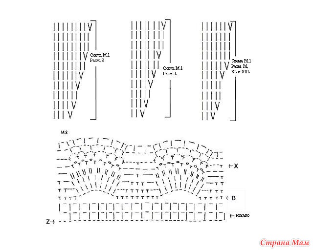 Далее вязать по схеме М1